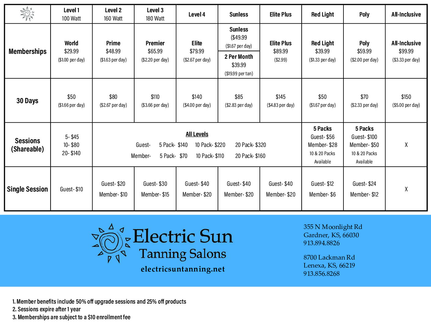 The owners and staff at Electric Sun Tanning Salons are dedicated to exceeding customers’ expectations. Offering outstanding customer service with state-of-the-art tanning equipment. We provide the best indoor tanning lotions in the industry by Designer Skin.